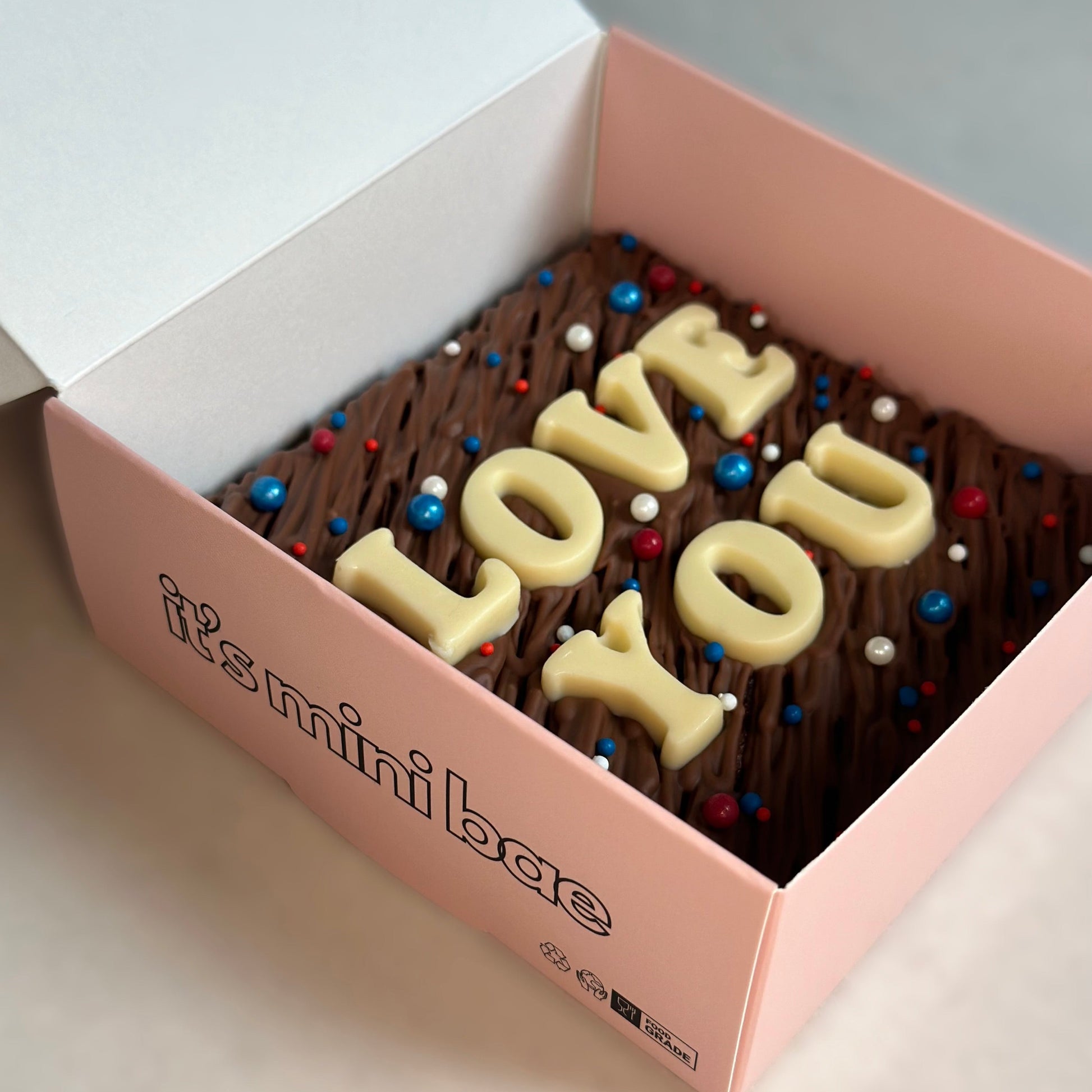 note: every order comes with 2 mini baes. please limit text to 2 lines with maximum 5 characters per line. each mini can be customized differently. custom text to be provided in order comments box or emailed to info@browniebae.ca
