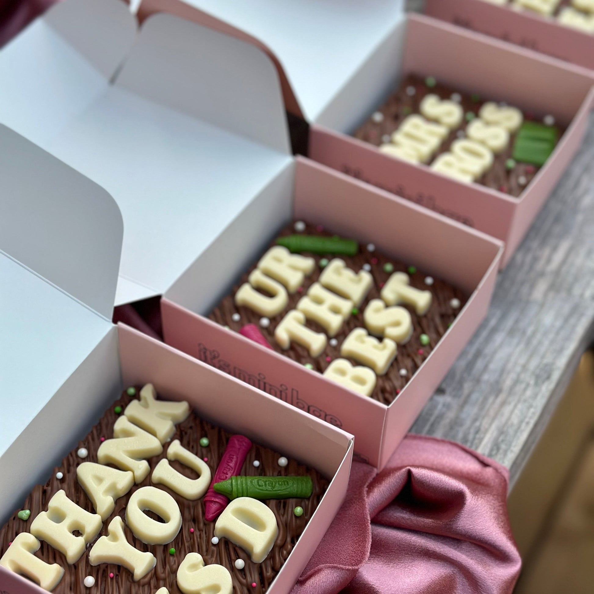mini baes - not looking to order our large slab? these minis make the cutest favour boxes! looking to gift your bridesmaids, employees or neighbours? look no further, we got you covered with these customizable mini slabs!